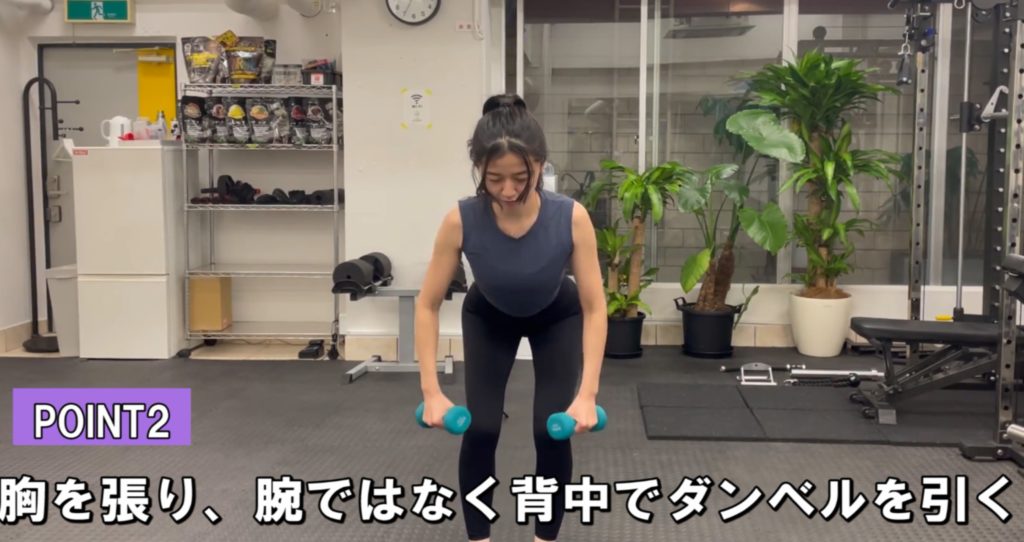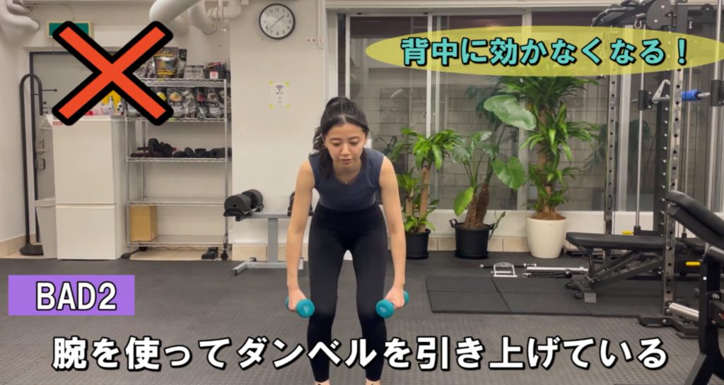 2.背中に効かないため、腕を使ってシャフトを引き上げないように意識