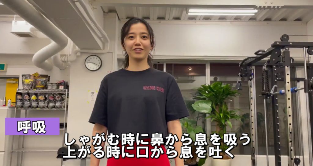 ・しゃがむときに鼻から息を吸い、上がる時に口から息を吐く