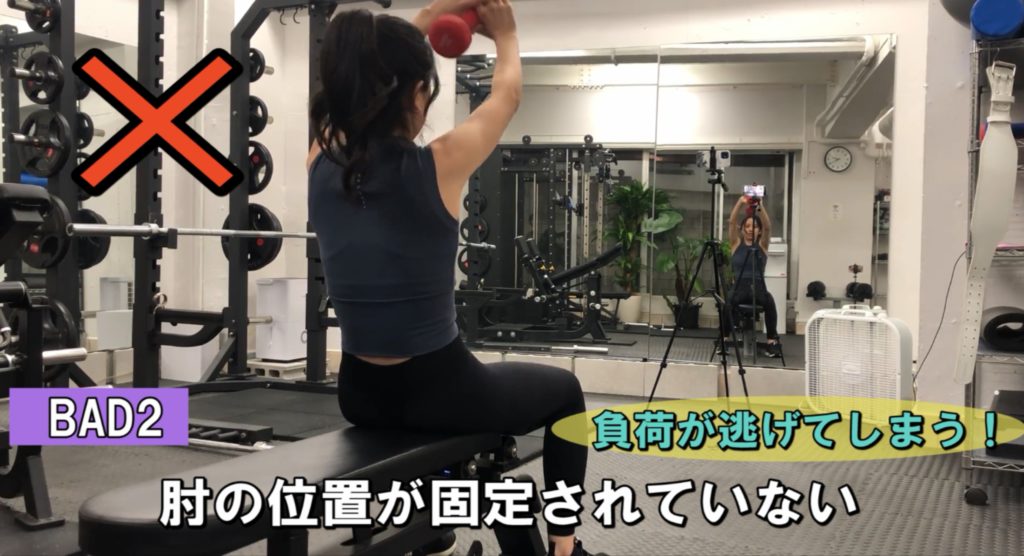 ・肘の位置がブレると上腕三頭筋への負荷が逃げてしまうので肘は固定する