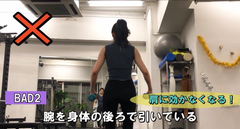 2.肩に効かなくなるので、腕を後ろに引きすぎないように意識をする
