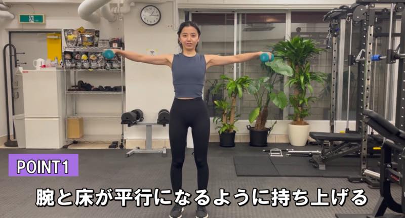 肩のメリハリを付けるために「サイドレイズ」は女性の方もぜひ取り組んでほしいトレーニングです。